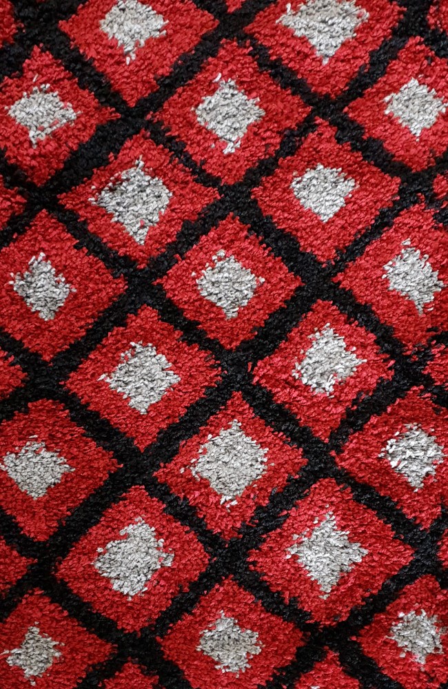 Килими з абстрактнии малюнком, а також однотонні (без малюнка) можуть бути виготовлені з килимових доріжок з використанням професійного оверлока від виробника і не мати бірки зі сторони основи. Це не вважається браком і вироби за цією причиною обміну та поверненню не підлягають