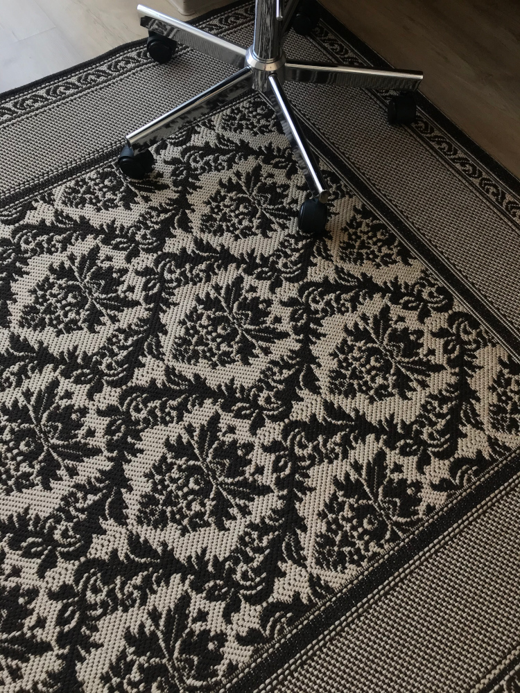 Килими з абстрактнии малюнком, а також однотонні (без малюнка) можуть бути виготовлені з килимових доріжок з використанням професійного оверлока від виробника і не мати бірки зі сторони основи. Це не вважається браком і вироби за цією причиною обміну та поверненню не підлягають