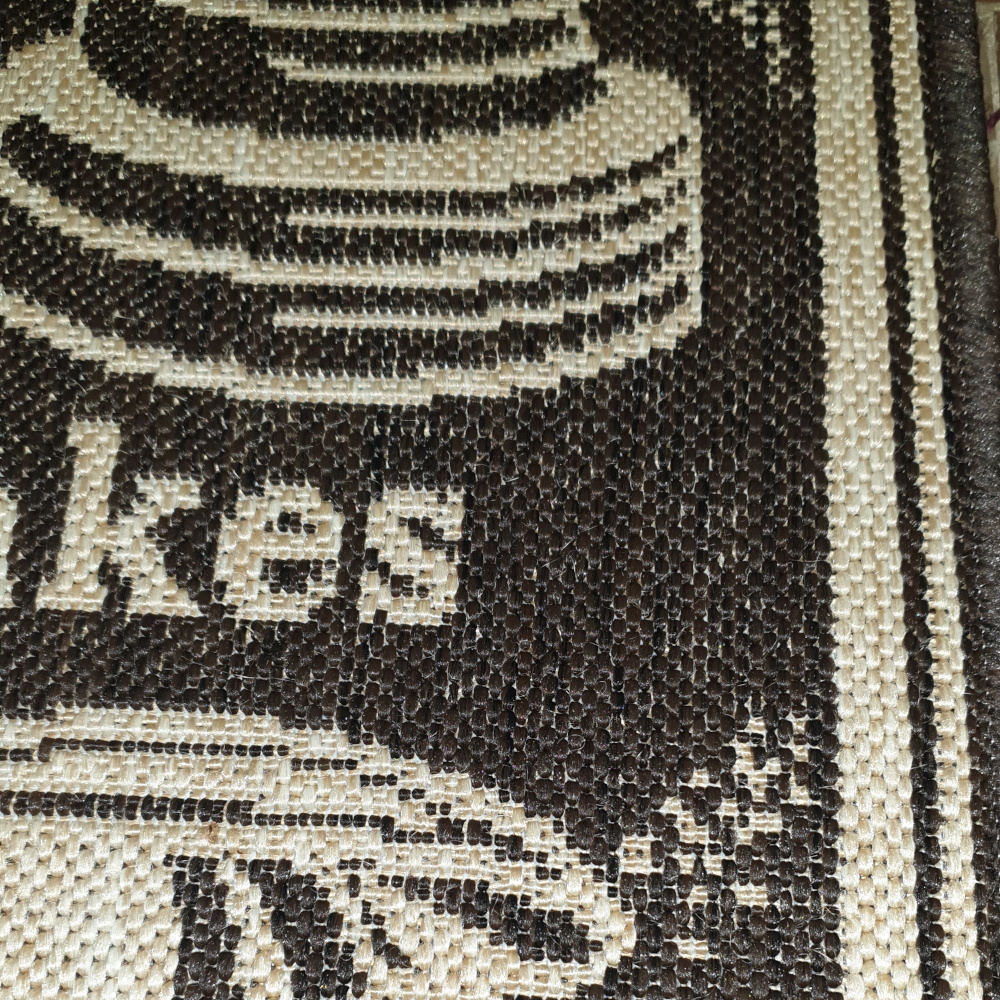 Килими з абстрактнии малюнком, а також однотонні (без малюнка) можуть бути виготовлені з килимових доріжок з використанням професійного оверлока від виробника і не мати бірки зі сторони основи. Це не вважається браком і вироби за цією причиною обміну та поверненню не підлягають