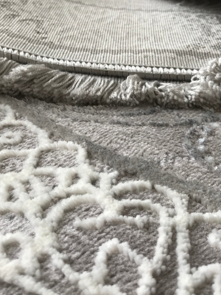 Килими з абстрактнии малюнком, а також однотонні (без малюнка) можуть бути виготовлені з килимових доріжок з використанням професійного оверлока від виробника і не мати бірки зі сторони основи. Це не вважається браком і вироби за цією причиною обміну та поверненню не підлягають