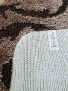 Килими з абстрактнии малюнком, а також однотонні (без малюнка) можуть бути виготовлені з килимових доріжок з використанням професійного оверлока від виробника і не мати бірки зі сторони основи. Це не вважається браком і вироби за цією причиною обміну та поверненню не підлягають