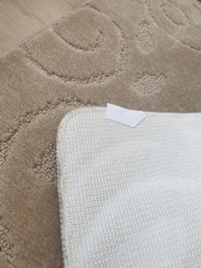 Килими з абстрактнии малюнком, а також однотонні (без малюнка) можуть бути виготовлені з килимових доріжок з використанням професійного оверлока від виробника і не мати бірки зі сторони основи. Це не вважається браком і вироби за цією причиною обміну та поверненню не підлягають